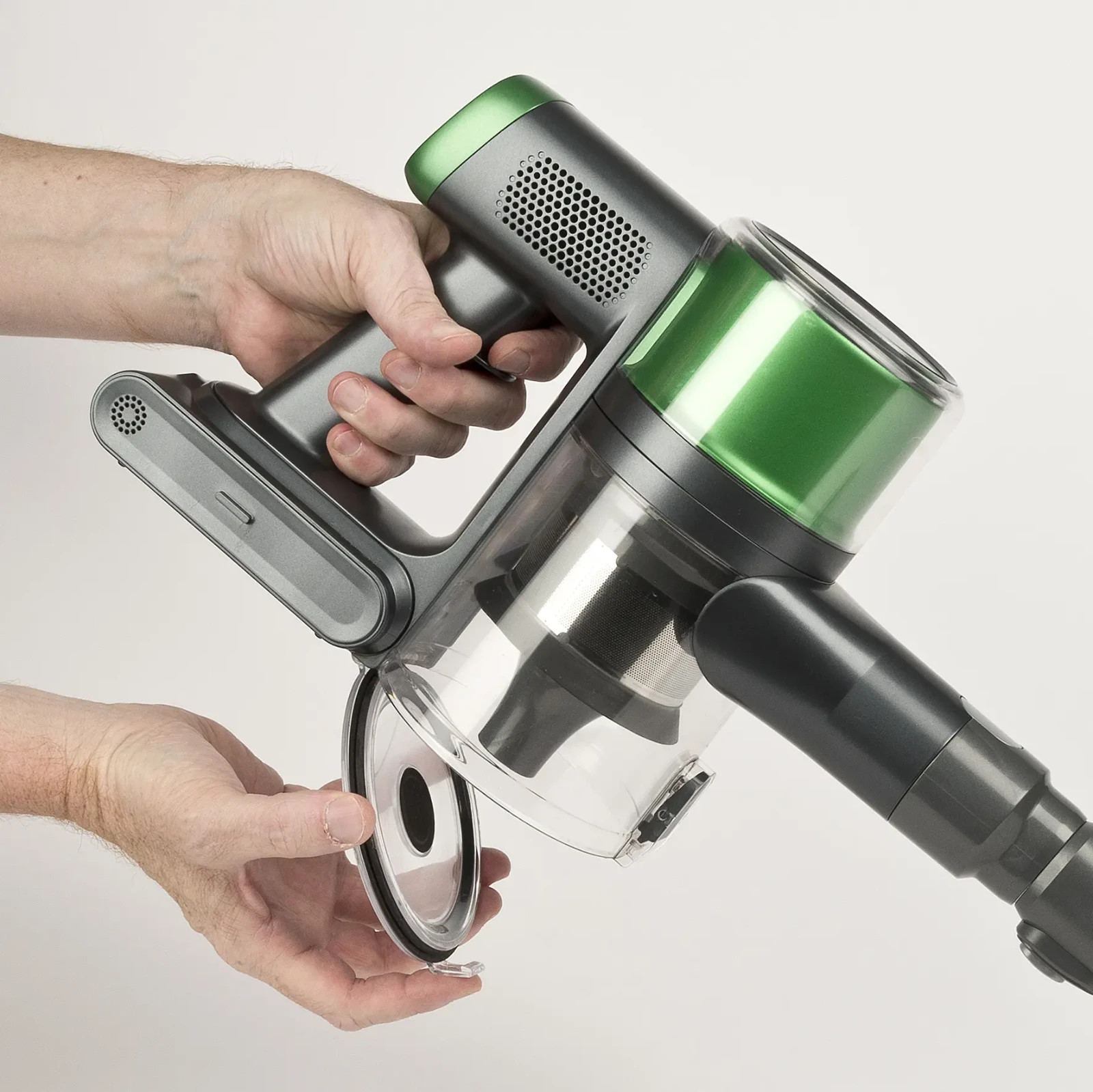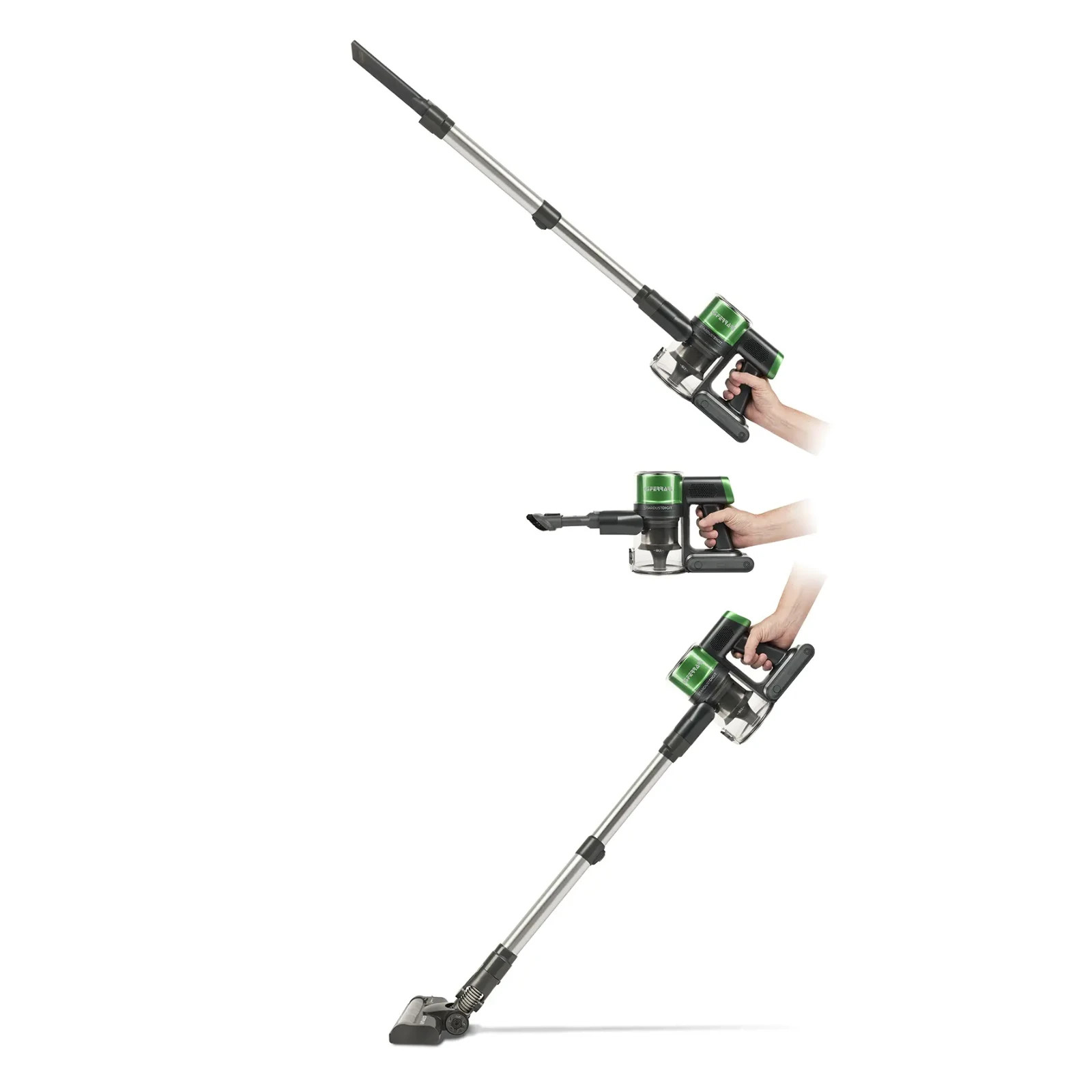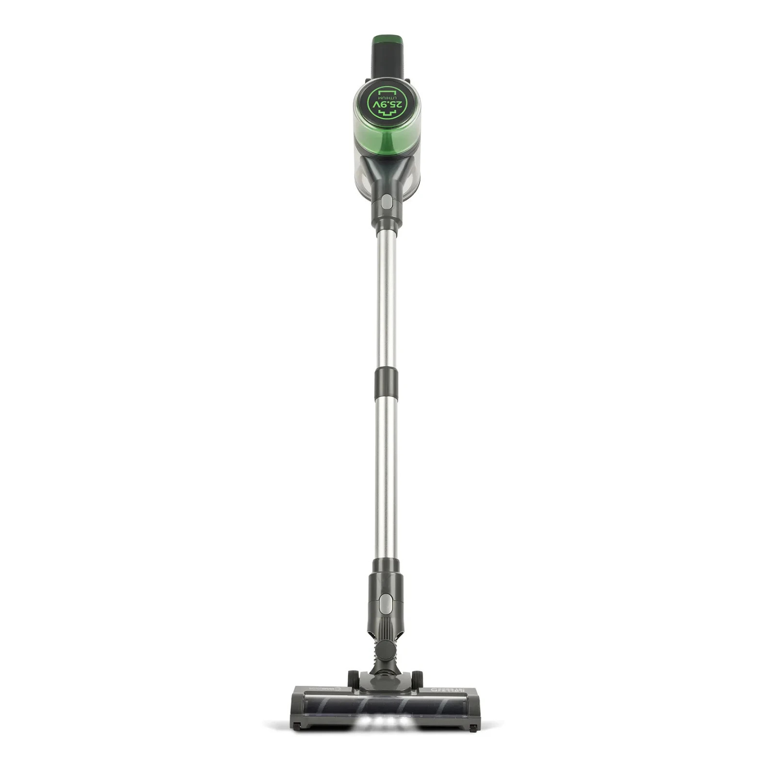Aspirapolvere senza filo con motore digitale potente (25 kPa) e silenzioso (74 dBa). Leggero e maneggevole, si trasforma in portatile. Batteria al litio 25.9V con autonomia fino a 40 minuti. Contenitore da 500 ml con svuotamento igienico. Include spazzola motorizzata, accessori per tessuti, angoli, auto e supporto a muro.