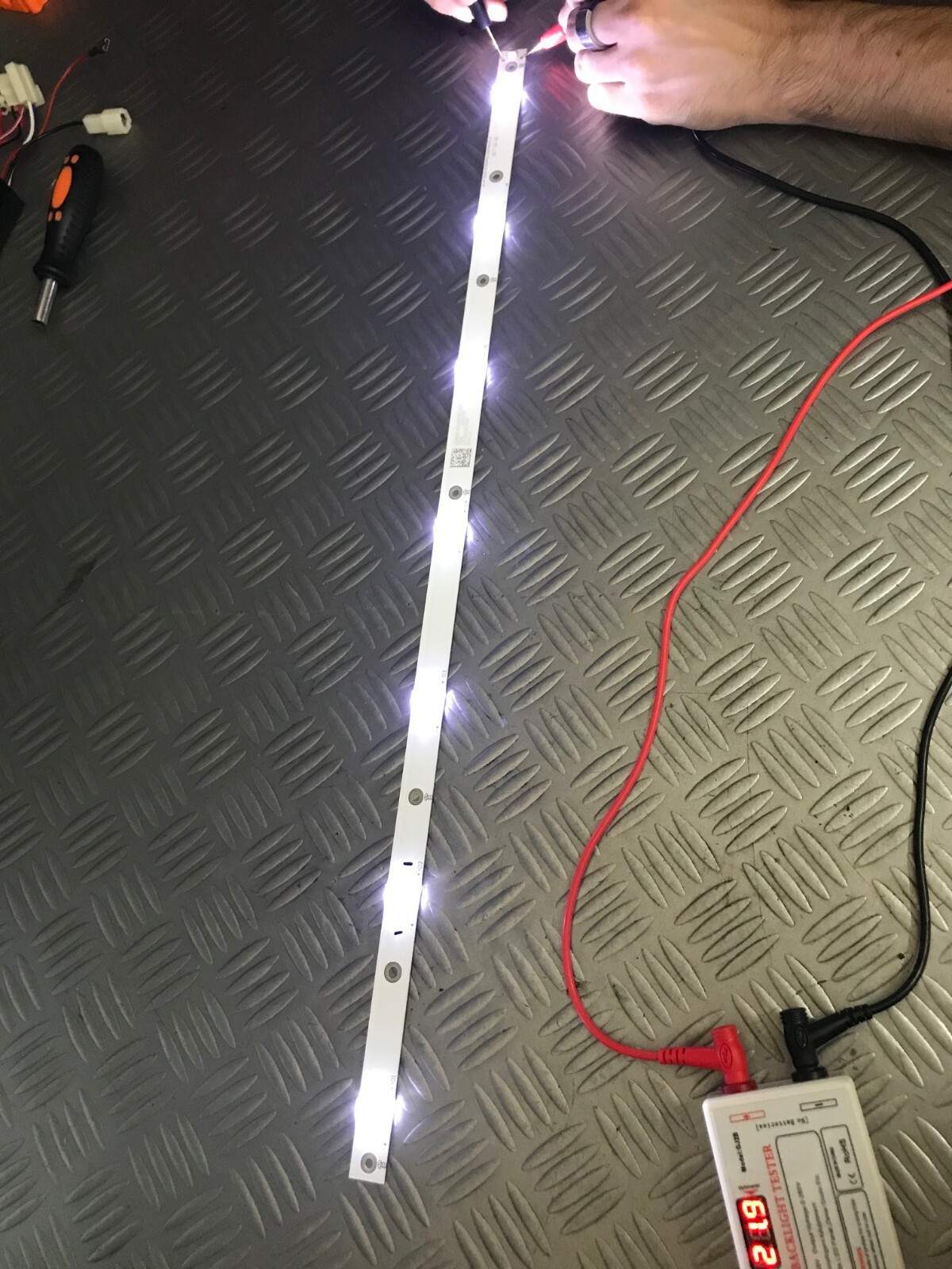 Led smontati da una tv con pannello rigato, come si vede dalla foto la striscia è stata testata e risulta funzionante.