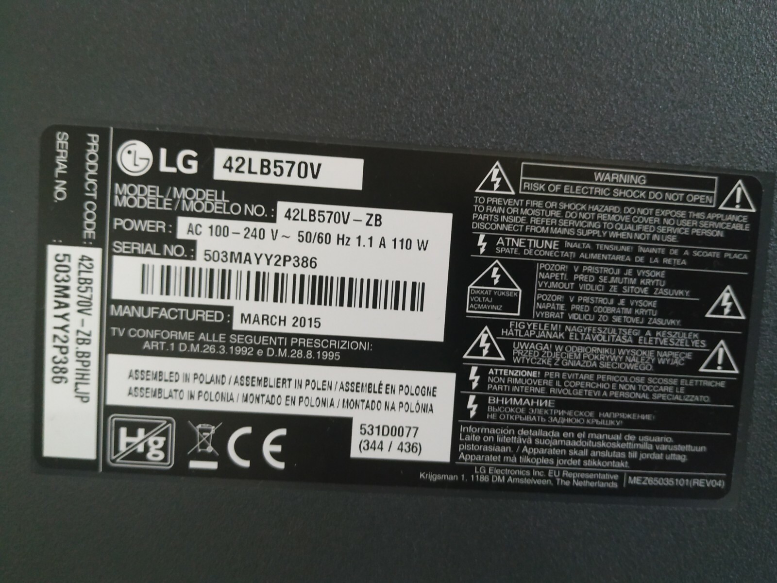 TV – LG – AUDIO – COPPIA CASSE – SPEAKER – 42LB570V – EAB62972101 + EAB62972102